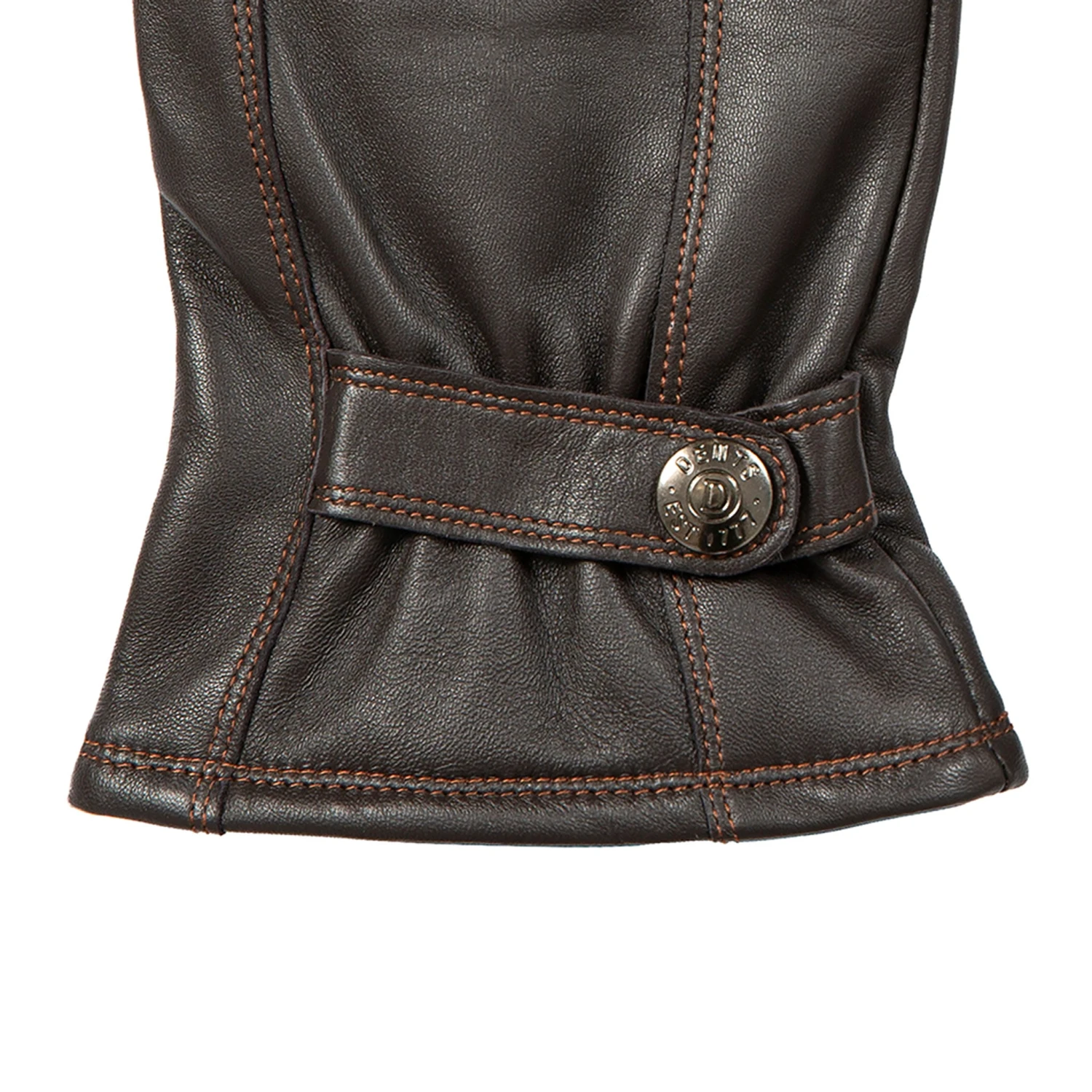 Dress with distinction thanks to Haworth, our leather gloves with contrast stitching. These winter gloves are made from premium hairsheep leather, a fine leather that is both strong and soft, stretchy and smooth and oh-so-comfortable. This leather is designed with touchscreen technology so there’s no need to remove your gloves and get cold hands when using your mobile phone. These phone-friendly gloves are also suitably stylish with delicate stitching in a contrasting colour bringing a delicate touch to your winter wardrobe. Further finishing details include the strap fastening, elasticated wrist and cosy lining, all adding up to a classic pair of gloves certain to be loved for years to come.