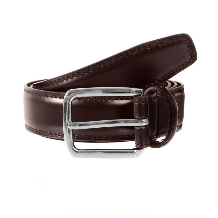 A classic leather belt finished with shiny fittings.
