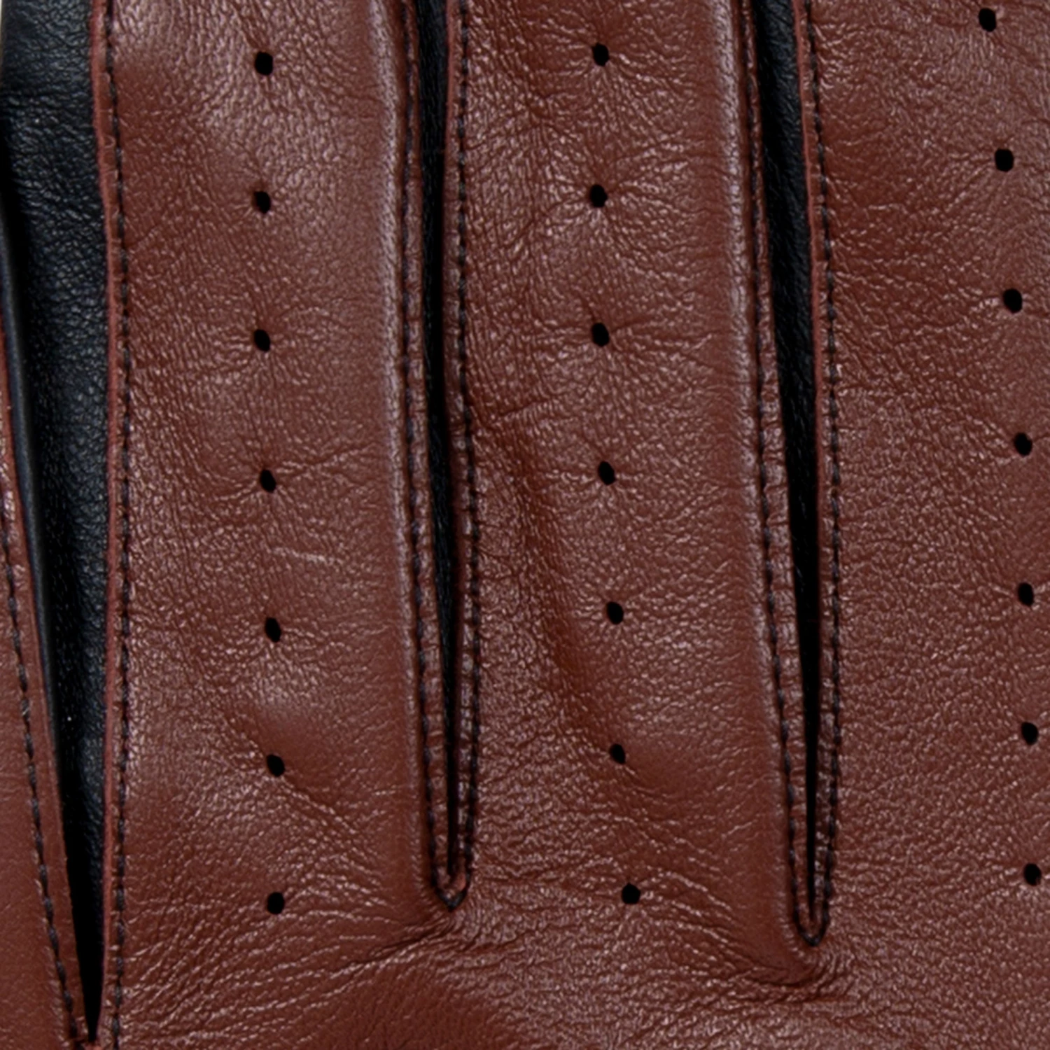 - Striking two-colour design and cross-shaped knuckle holes offer a modern edge to driving glove styling