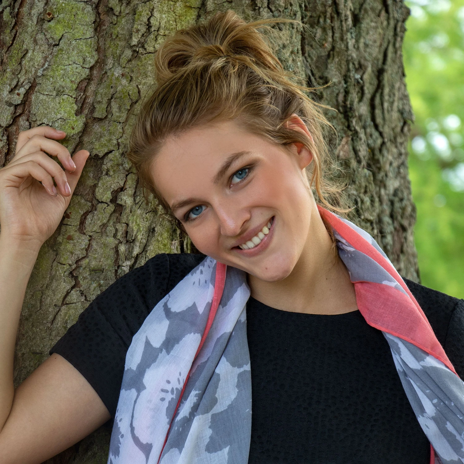 Swing into summer with our floral print scarf. Designed with a simple two-colour floral pattern, the lightweight scarf has a nostalgic, retro feel reminiscent of summer days gone by. The design is given a smart finish thanks to the bold border and the scarf is offered in three eye-catching colourways. Choose from white with green flowers and a blue border, white with grey flowers and a pink border or navy with white flowers and a red border. Wear it with other vintage-inspired items for a full-on look or with more modern fashions for stand-out style.