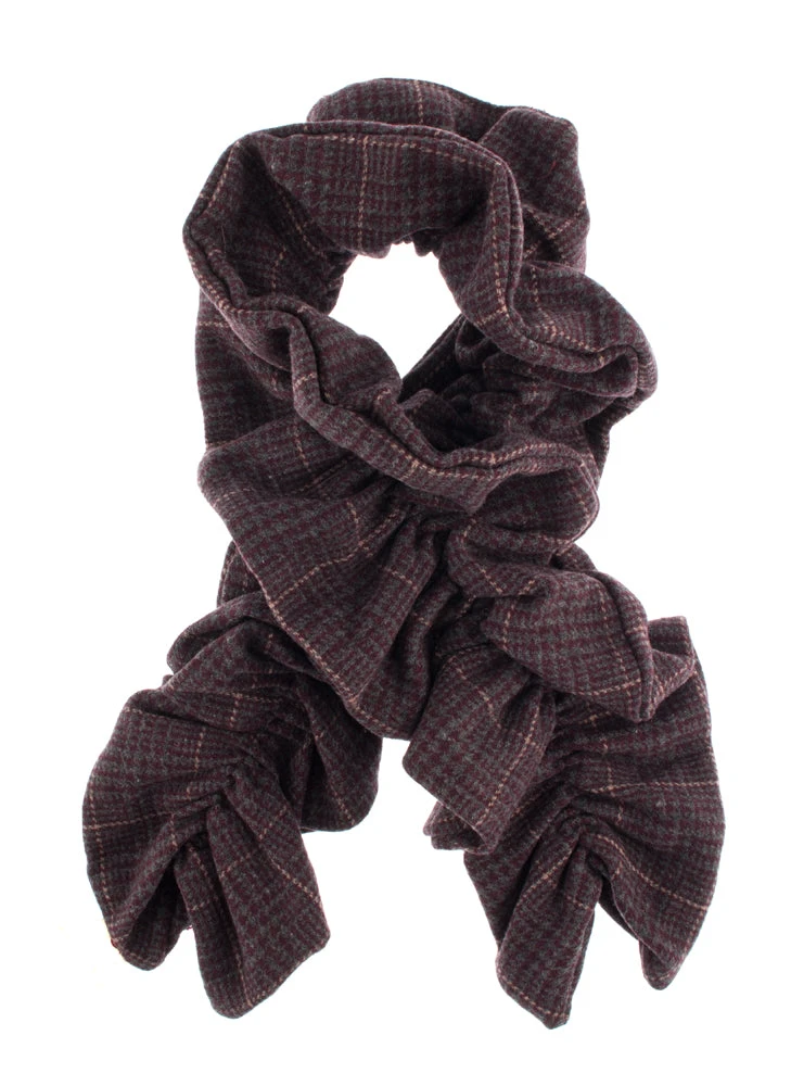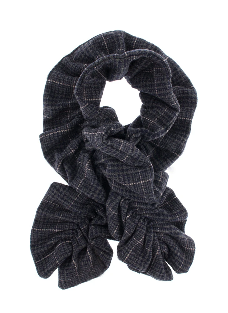 Stand out this season with our unique tweed scarf. It combines the classic with the quirky creating a scarf certain to catch the eye. The fabric is traditional checked tweed, while the double-sided design features a length of elastic inside it lending it a ruched and ruffled softness. Offered in a range of sophisticated shades, this unusual accessory works wonderfully with our Abraham Moon tweed gloves.