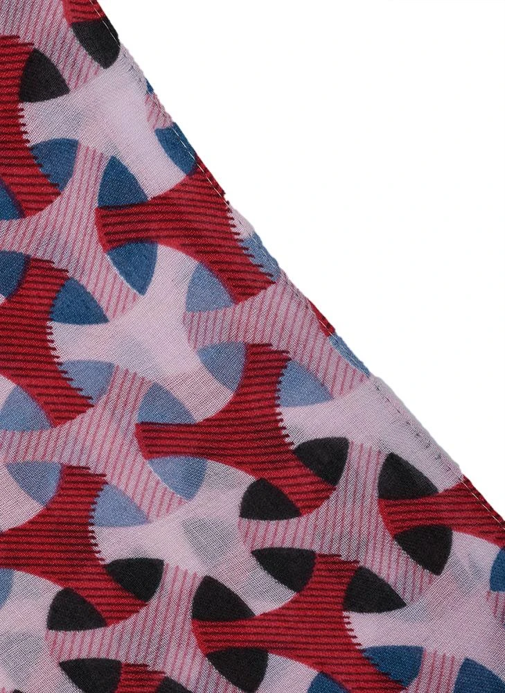 Stand out from the crowds this spring with a statement print. Introducing our geometric-pattern scarf. This summer stunner works the hot trend for geometric shapes with a repeat pattern of interlocking cut-out circles. Choose from two instantly-wearable colours – blue to cool things down or pink to turn up the heat. With raw edges and a fine weave for a textural touch, this lightweight scarf is ideal to add colour and interest to any summer outfit.