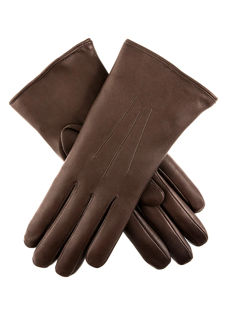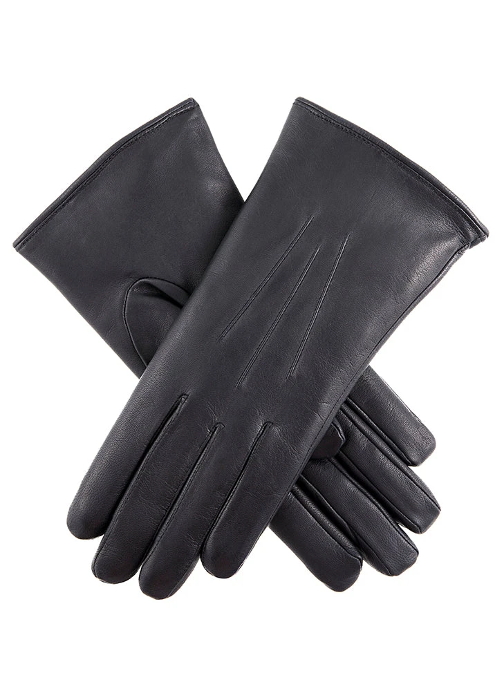 - Three-point decorative stitching on the back of the gloves elongates the look of the hand for a refined appearance
