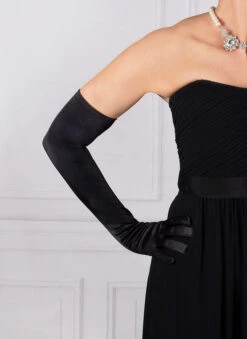 - Gloves are opera length – pairs elegantly with bare shoulder
