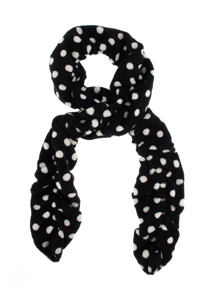 Cosy up in cold weather with our fleecy and fun ruffle scarf. The strokably-soft fabric features a bold polka dot design offered in two unforgettable colour combinations. Play it cool with white spots against a black background, or opt for vibrant energy with berry red dots instead. The scarf has a ruffled design thanks to the stretchy elastic giving it a distinctive look and feel – perfect for original dressers.