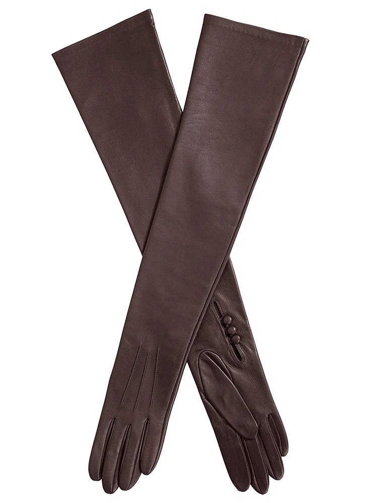 Own the night in our unforgettable opera gloves. The longest leather gloves in our collection, they extend far up the arm for unrivalled coverage that effortlessly oozes old school glamour. Made from finest hairsheep leather, they boast a buttery softness and are unlined for a close, second-skin feel. The silhouette is kept streamlined and sleek thanks to the musketeer palm opening with covered buttons and loops. This maintains the flattering fit around the wrist while helping you comfortably put the gloves on and take them off. Choose from four stunning shades to complement your formal look. Whether dressing for a black-tie dinner, glitzy party or even a red carpet event, simply pull on your Polly gloves and get set to steal the show.