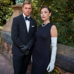 - Gloves are opera length – pairs elegantly with bare shoulders