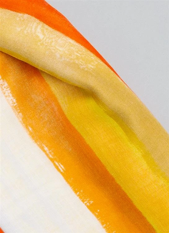Add an artistic air to your spring look thanks to our striped scarf. The stripes run the length of the scarf in a painterly style that evokes arty brush strokes. These elegant stripes are in a tonal palette, offered in a choice of three summer shades certain to brighten any outfit. Choose from sunny yellow, fresh mint or cool blue. The lightweight scarf is finished with raw edges for an informal feel making this the perfect way to add summer colour to your everyday look.
