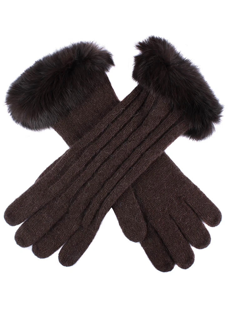 Finely knitted gloves showcasing silky soft rabbit fur cuffs a classic cable knit design.