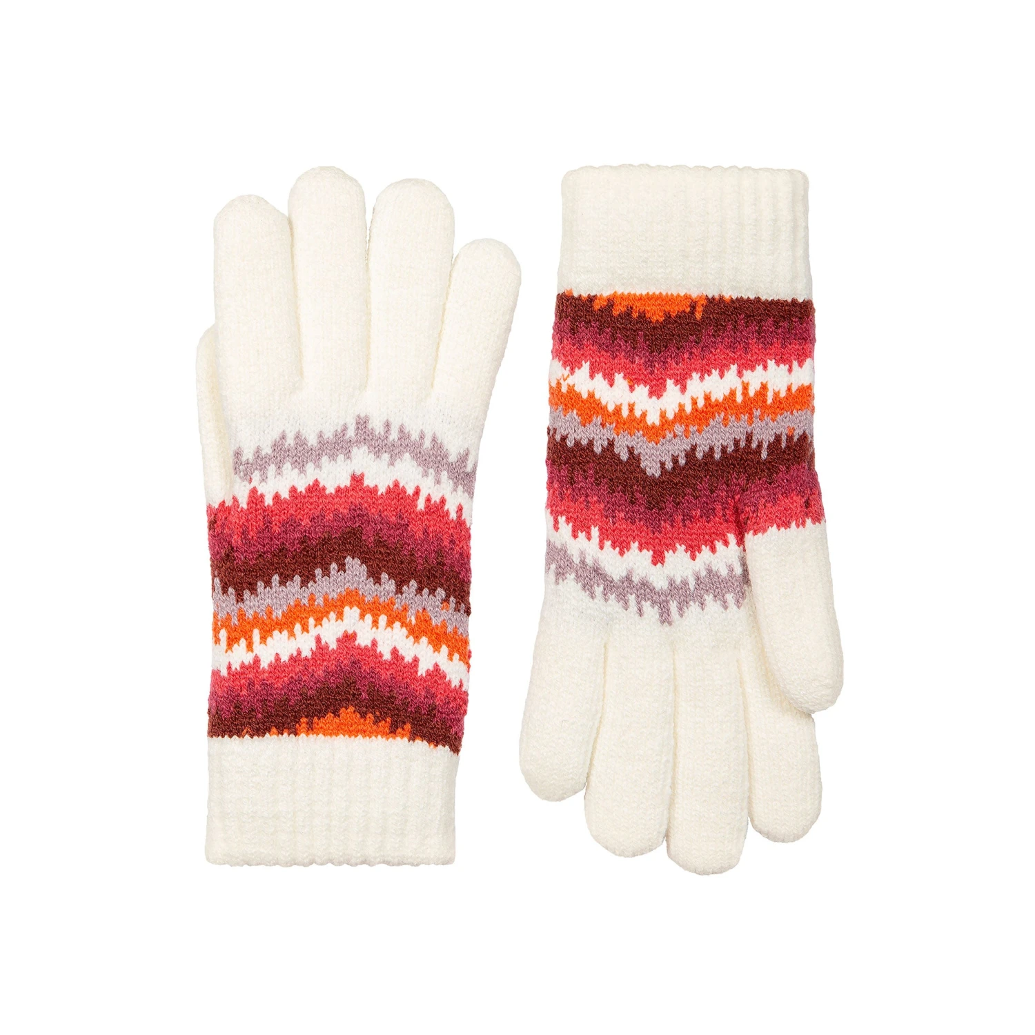 Spice up your winter wardrobe thanks to our knitted gloves with sizzling stripes. Offered in a classic winter white, it’s the irregular stripes that catch the eye in a vivid mix of warm and cool shades. There’s hot pink and zesty orange turning up the temperature; pretty lavender and classic grey calm things down, while deep purple and earthy brown add a quiet richness. The design is instantly alluring and is a fun, modern spin on traditional stripes. The gloves are super cosy and comforting, the extra lining of feather-soft yarn certain to keep hands warm in winter. Pair with the matching hat and scarf for full-on stripey style, or wear alone and simply let the gloves steal the spotlight.
