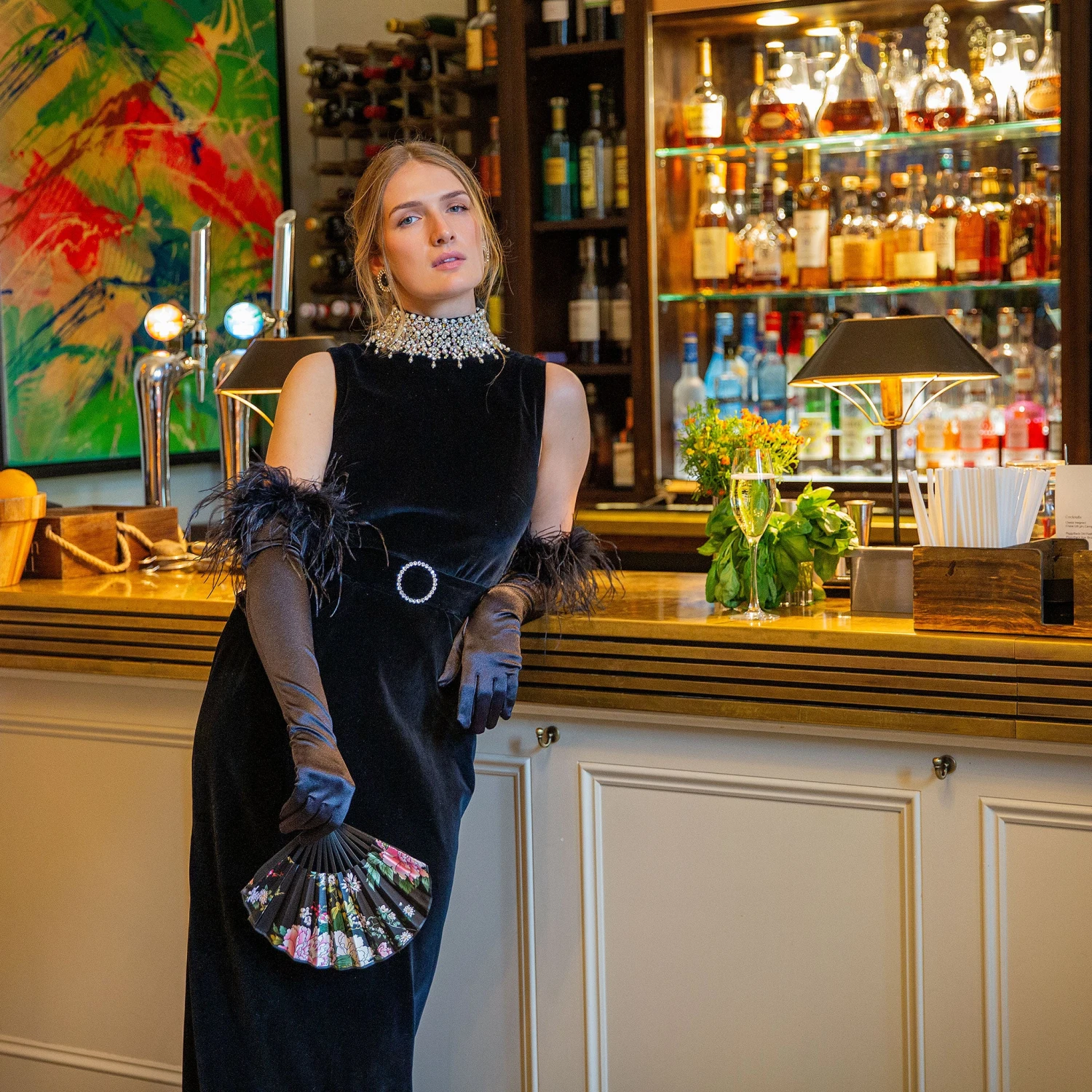 Ruffle some feathers with our opera gloves finished with feather trim. Extending to the upper arms, these opera gloves offer incredible coverage for full-on glamour. The drama is heightened further by the delicate ostrich feather cuffs that add real ‘wow’ factor. The contrast of the sleek satin with the flamboyant feathers creates a striking silhouette that’s not for the timid. Wear with a strapless gown for red carpet-ready glamour to any VIP event, ball or special occasion.