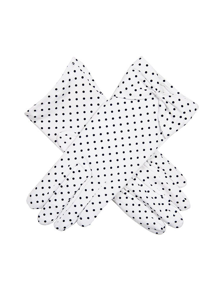 Go dotty for our spotty gloves this summer. These short, warm weather gloves are packed with cute polka dots for an old-school charm that is both vintage and timeless. The gloves are finished with a pretty bow at the cuff in the same spotty fabric. Offered in a two stylish colours, choose the one to suit your summer formal look. Clean white is teamed with either classic black or elegant navy spots. The perfect finishing touch if dressing for a summer wedding, garden party or any daytime special occasion.