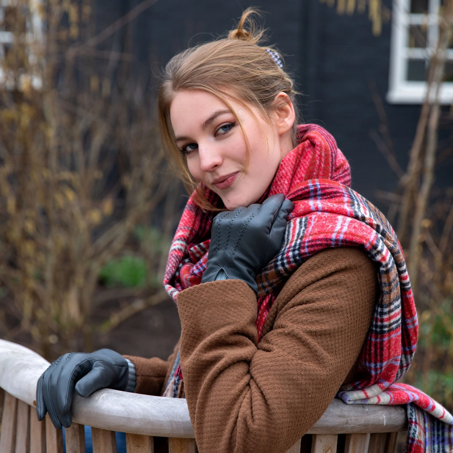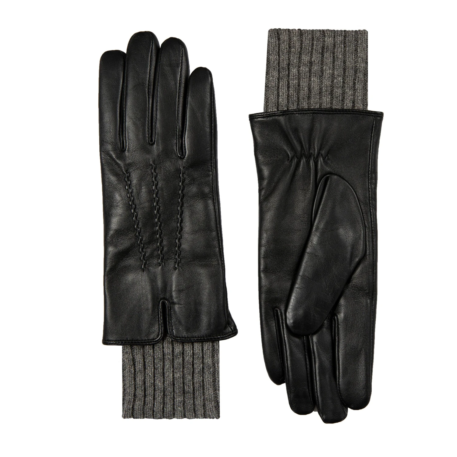 Say goodbye to chilly wrists forever with Tamara. These premium leather gloves deliver instant warmth, from fingertip to beyond the wrist, thanks to the protruding knitted cuffs. Made from a quality wool-blend, these ribbed cuffs offer extended coverage and keep the gloves securely in place. The cosiness continues with the wool-blend lining, adding winter warmth to a classic leather glove. Finer details include the handsewn, three-point decorative stitching, the elasticated inner wrist and back vent – upping the elegance and comfort. Offered in three irresistible colour combinations, these winter gloves are perfect for weekends and casual dressing.