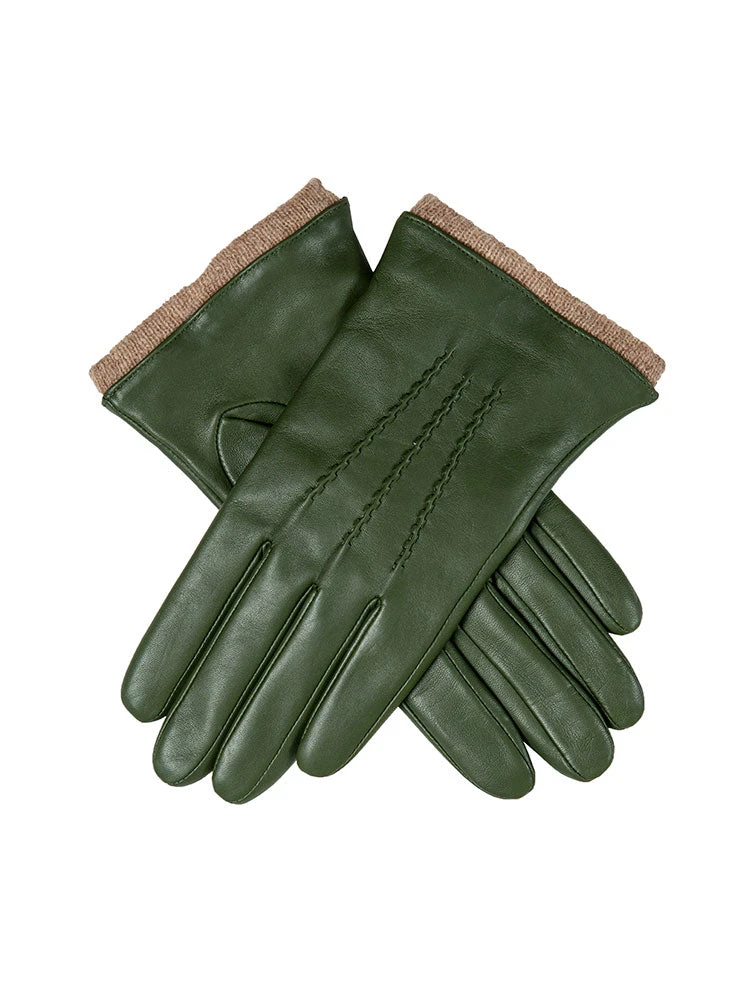 A classic smooth leather glove with pure wool knitted cuffs and lining for extra warmth. Finished with 3 handsewn points.