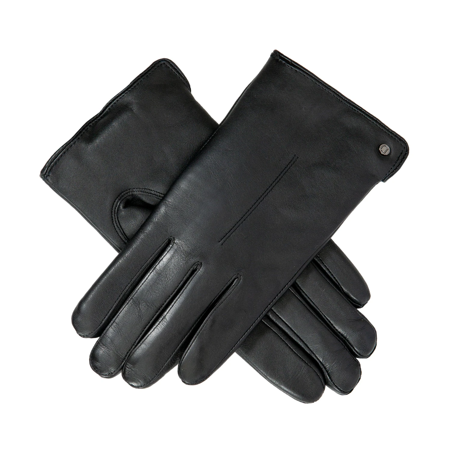 An everyday favourite – these leather gloves are just the thing for a busy lifestyle. Boasting touchscreen technology, you can still use your mobile phone while wearing them – so no need for cold fingers as you catch up on your messages or scroll through your emails. Made from finest hairsheep leather for a soft, supple feel, they’re lined with soft faux fur for a cosy and warming wear. Finished with a few finer details, such as the single point stitching and Dent stud, these modern gloves combine style and comfort to create a winter wardrobe staple to be enjoyed for many years to come.