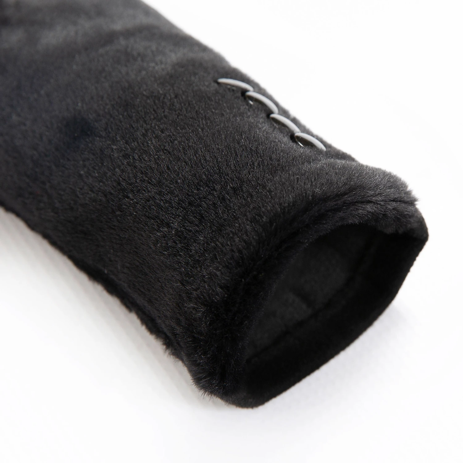 Add some strokably-soft style to your seasonal look with these winter gloves. They feature a remarkable combination of two much-loved fabrics, combining to create something truly special. On the back of the glove, there’s faux fur – so perfectly suited to winter wear and always on-trend. Flip to the glove’s palm and there’s faux suede, another enduringly popular animal-friendly alternative. And they’re not just super-stylish, these gorgeous gloves also feature touchscreen technology so you can wear while using your mobile phone. Finished with decorative buttons and lined with velour for a comfortable and cosy wear, these unconventional and unique gloves are for those that like to create their own style rules.